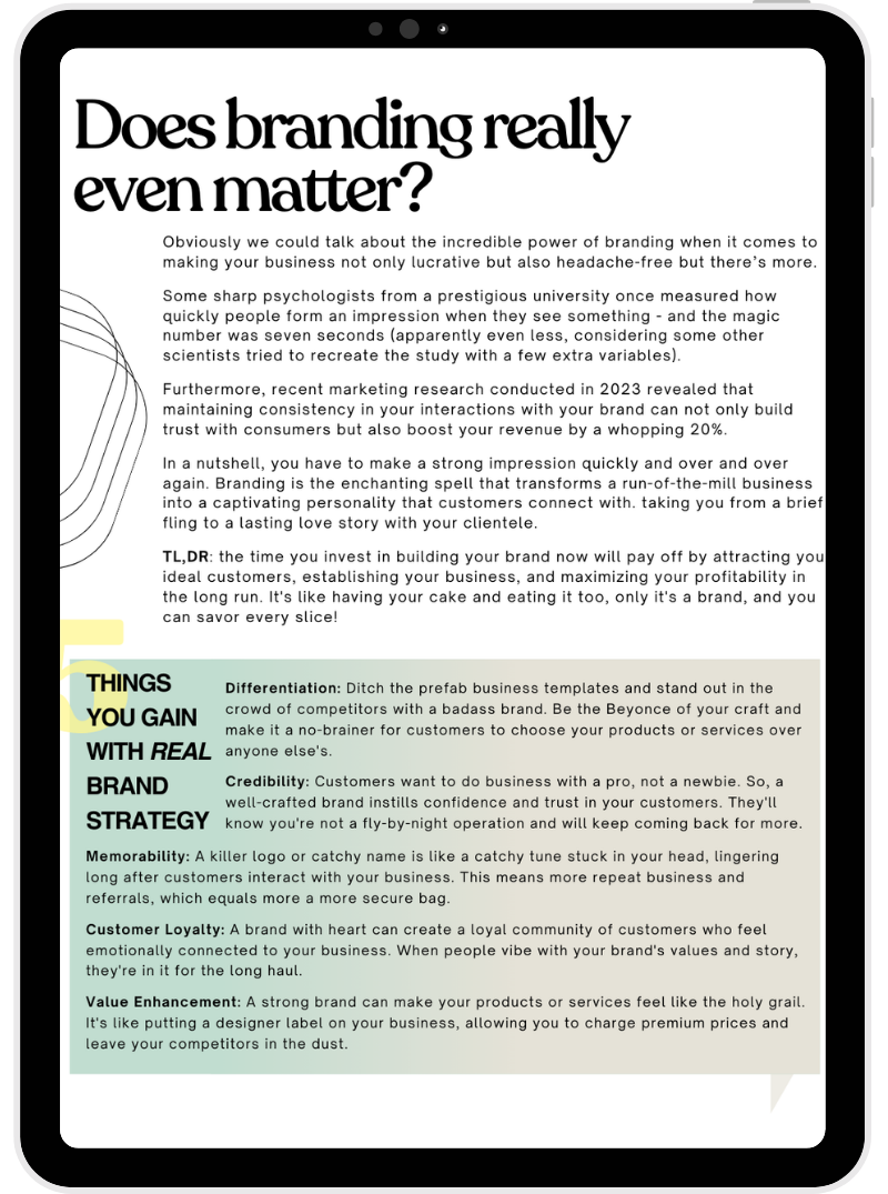 Designed from the same strategic framework we use with our clients, it guides you through clarifying your mission, identifying your audience, and shaping a brand foundation built to last. Through structured exercises and reflection prompts, you’ll begin developing a brand that feels aligned, recognizable, and rooted in intention.